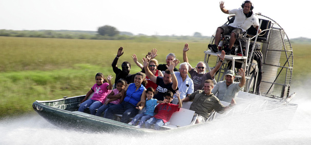 The Everglades Alligator Farm is currently home to about 2,000 alligators of all sizes. The smaller alligators are kept in growout pens and the larger alligators are in natural settings called breeding ponds. It takes about 6 years for an alligator to start breeding. The female alligator will have only one clutch of eggs a year, depending on the mother's age and fertility the clutch will contain up to 45 eggs. A trip to the alligator farm includes an exciting airboat tour into the surrounding Everglades and a walk around the farm to see the alligators, crocodiles, caimans, and wildlife.
