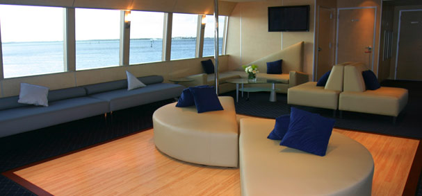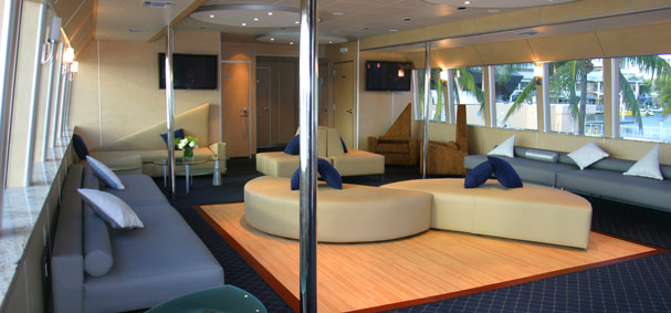 The moment you set foot aboard the Venetian Lady, her sleek, first-class design will take your breath away. This impeccable luxury yacht has gorgeous stainless steel spiral stairways, comfortable seating for your guests, absolutely stunning bathrooms, and a Captain’s Lounge that can easily be transformed into a modern urban dance club.